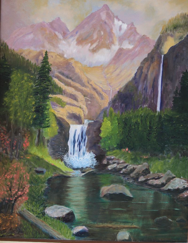 I have glimpses of memory from my very early childhood of my mother  holding a pallet knife and a paint tray.  But not long after my birth my mother…for reasons of insanity caused by parenting, no doubt…stopped painting.  It was a travesty, as my mother has spent her entire life taking care of my dad and us kids…never doing much for herself.  But a few years ago she picked up a brush, signed up for a class at the local college…and begun again.  Here are some samples of her work.  I think she is quite accomplished.